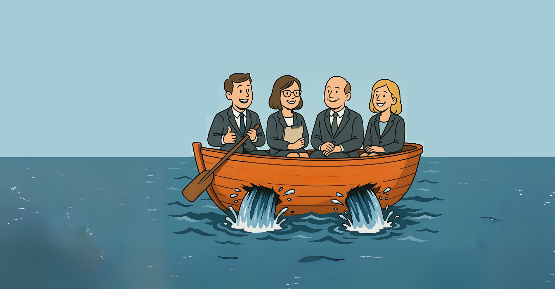 - I ledelse: En forkert strategi bliver ikke udfordret, fordi kulturen ikke tillader det. Først når medarbejderne begynder at forlade skuden, går alarmen.